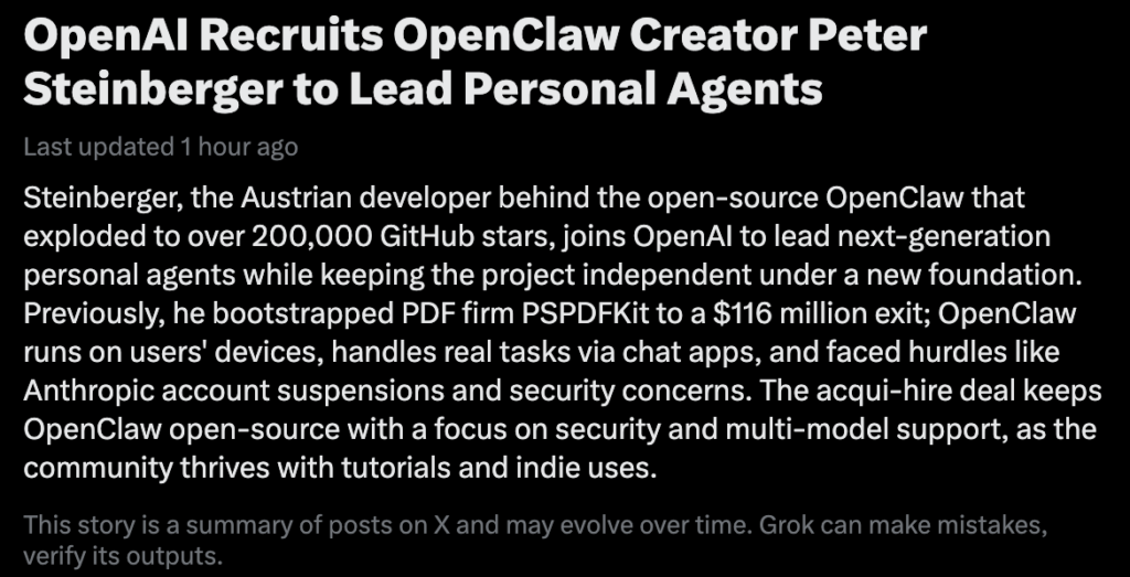"Peter Steinberger is joining OpenAI to drive the next generation of personal agents."